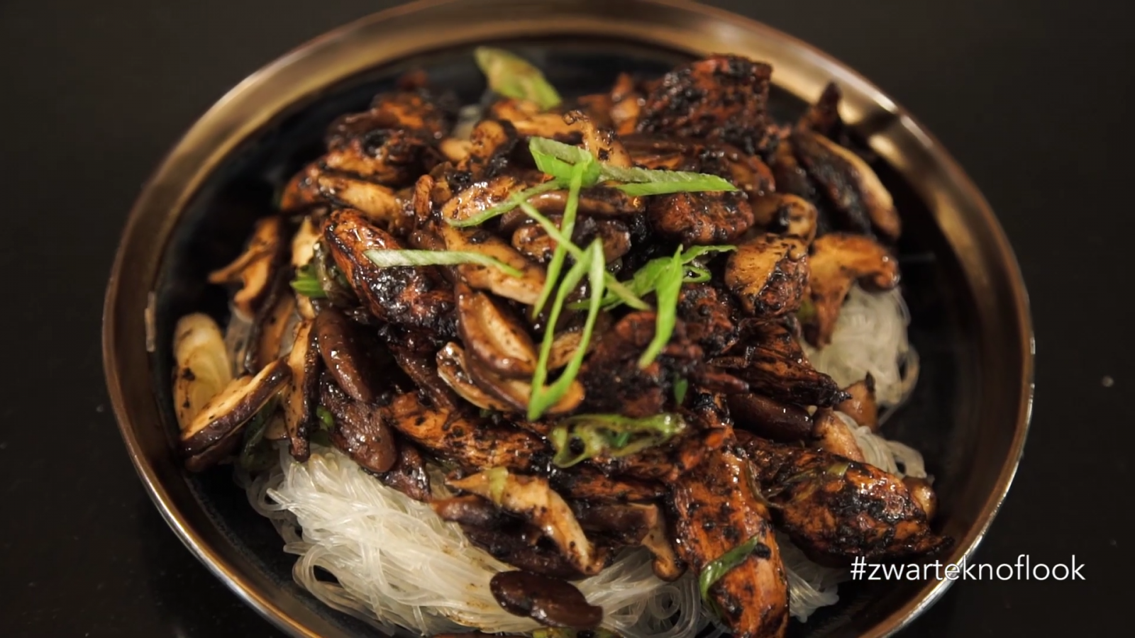 - Giet de glasnoedels af en serveer op een bord met daarover de gemarineerde kip en wat extra frisse bosui.